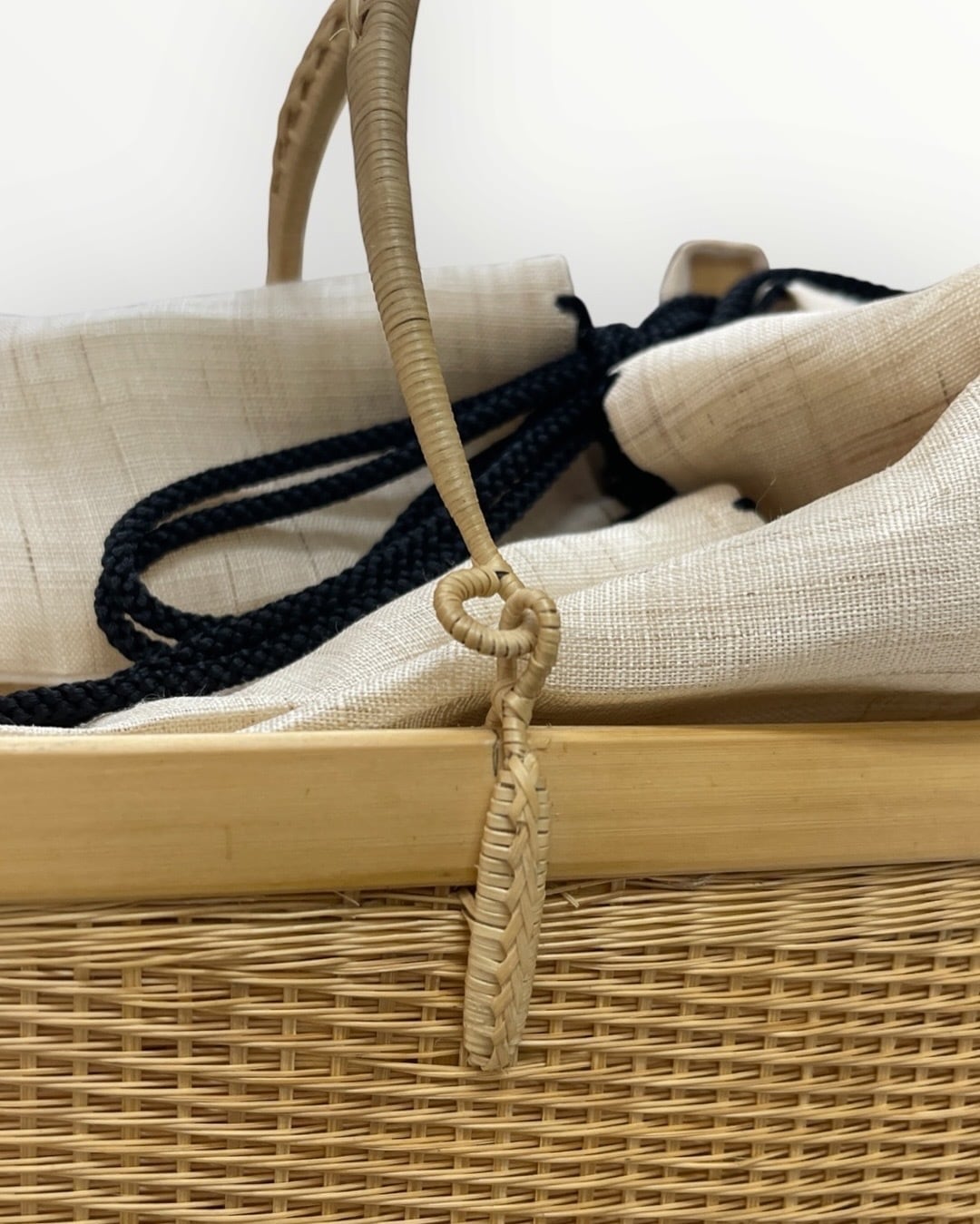 素材:竹(籠)・絹麻綿(巾着)