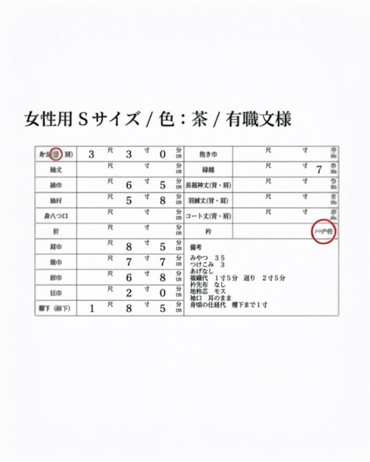 ・備考欄に裄丈の記入をお願いします。
